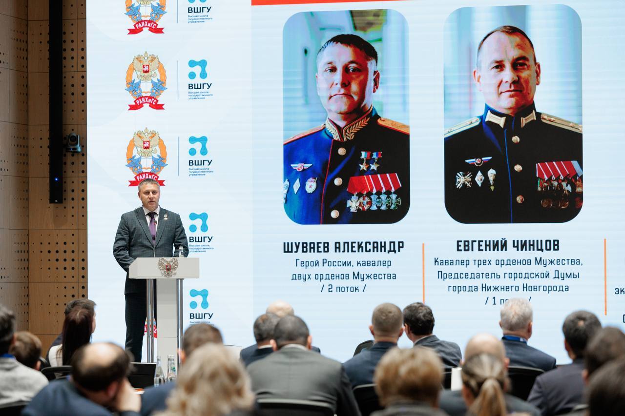 В Президентской академии 19 ноября 2025 года прошел семинар для доверенных лиц наставников программы «Время героев». В рамках семинара участники первого и второго потоков программы — Евгений Чинцов и Александр Шуваев — поделились опытом работы с наставниками и в формате открытого диалога ответили на вопросы.
